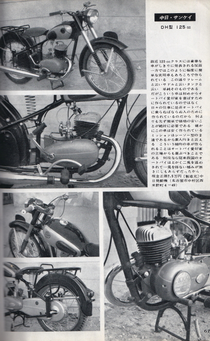 中日新聞社とサンケイ新聞社が共同開発したオートバイ「DH型」ですね。1955年に発表されたこのオートバイは、当時の一般的なオートバイよりも大きく、排気量も125ccと大きめでした。新聞配達用に設計されており、頑丈な作りと大きな荷台が特徴でした。