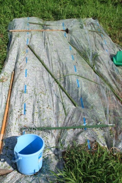 家庭菜園側は現在雑草をシルバーマルチで覆って雑草を退治中です。覆われた雑草はまだ元気なのであと半月はかかるかなと予想しています。上手く土中の温度が85度位まで上がれば雑草の種も死ぬのでこの時期の猛暑はありがたいですね。もっとも農作業するには耐えがたい暑さなのでもっと涼しい方が良いのですが。矛盾していますね(笑)。